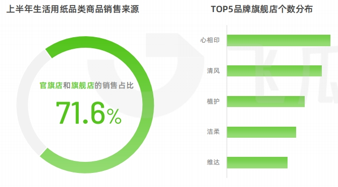 可以看到,2023上半年生活用紙的銷售來源中,旗艦店與官方旗艦店的銷售占比高達71.6%;品牌們通常會圍繞產(chǎn)品線或細分人群進行店鋪矩陣搭建,進而開展有針對性的營銷,以增加轉(zhuǎn)化幾率。