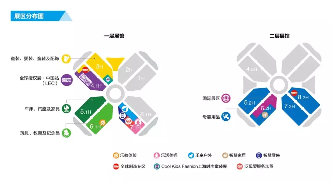國家會展中心主要展區(qū)分為兩層,整體呈四葉草形。館比較大,大家記得看好展區(qū)分布圖。